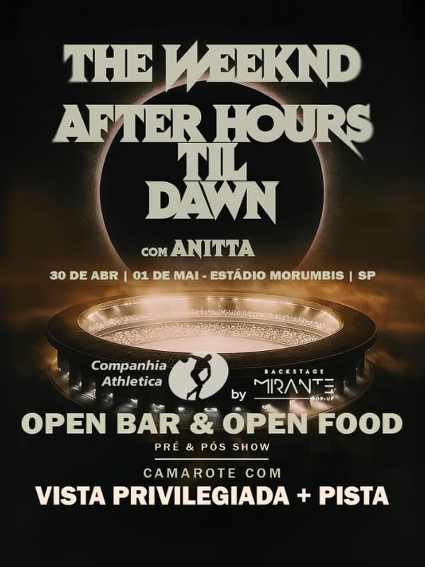 Quem viveu a noite histórica de 2024 sabe: The Weeknd não apresenta apenas um show, ele cria um universo próprio. Em 2026, essa jornada retorna a São Paulo para duas datas no MorumBIS, agora com participação especial de Anitta nas apresentações do Brasil. Um espetáculo cinematográfico e íntimo, para ser visto e sentido de perto. Experiência Backstage Mirante POP‑UP