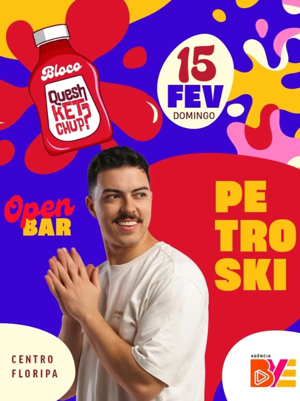O Bloco Quesh Ketchup promete ser o evento mais inesquecível do Carnaval em Floripa! Com formato open bar, a atração mais pedida está de volta, o DJ Petroski e muito mais, o bloco combina energia contagiante, música boa e um clima único. Dia 15/02, no coração da cidade, você vai viver uma experiência que só o bloco mais gostoso pode oferecer.