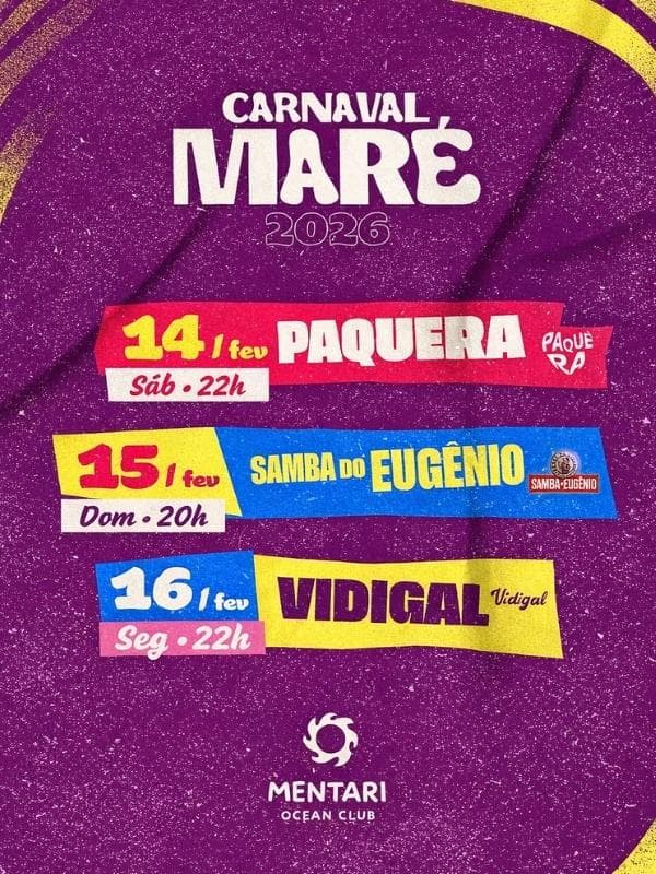Carnaval Maré 2026 Vidigal, formando um fim de semana completo para quem quer viver o Carnaval de forma contínua em Camburi.