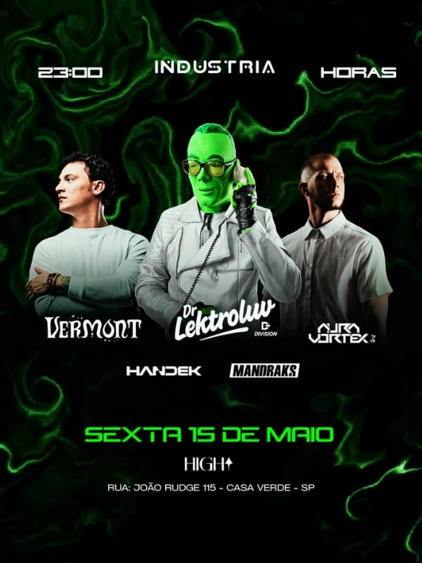 15 de maio na Industria, a noite é comandada por Dr. Lektroluv, trazendo os clássicos que marcaram época junto das suas produções atuais, em um set pensado para dominar a pista do início ao fim.